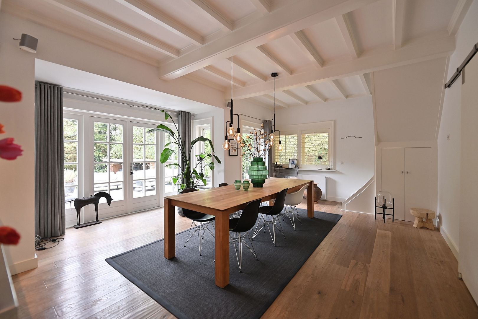 Deze vrijstaande woning, een monumentaal pand uit 1925, biedt veel ruimte met een woonoppervlakte van ongeveer 202 m² en een perceel van circa 1.275 m². De woning beschikt over 5 kamers, waaronder 4 slaapkamers en 2 badkamers, verspreid over 3 verdiepingen. Het interieur is gestoffeerd en er zijn voorzieningen zoals airconditioning en vloerverwarming (deeltijds). Het onderhoud van zowel binnen als buiten is goed en de woning is voorzien van dakisolatie en grotendeels dubbelglas. Gelegen aan de bosrand in een bosrijke omgeving, heeft de woning een rondom liggende tuin, een balkon en een vrijstaande schuur met elektra. De huurprijs bedraagt € 5.750 per maand, exclusief servicekosten van € 150. Oplevering in overleg.