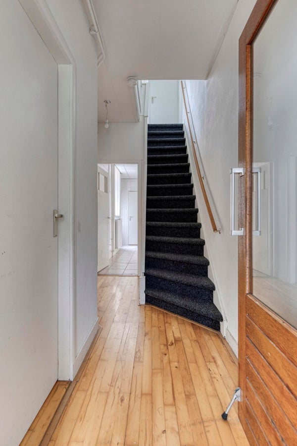 Begane grond; Entree met hal en trapopgang naar de eerste verdieping. De ruime en lichte woonkamer is voorzien van een fraaie parketvloer en grote raampartijen die zorgen voor veel natuurlijk licht. De gesloten keuken is uitgerust met diverse inbouwapparatuur en geeft toegang tot de onderhoudsvriendelijke achtertuin met achterom. Aansluitend bevindt zich de nette badkamer, voorzien van een douche, toilet en wastafel.