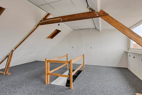 Tweede verdieping; De zolderverdieping is bereikbaar via een vaste trap en biedt volop ruimte en mogelijkheden, bijvoorbeeld voor een extra slaapkamer, thuiskantoor of hobbyruimte.