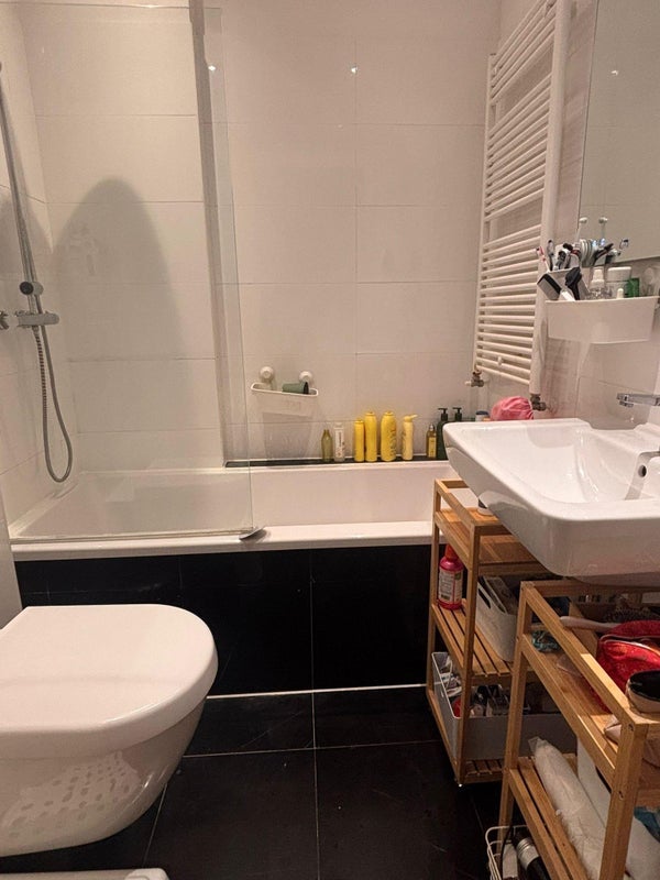 Ook de eerste badkamer is op deze etage gelegen en is uitgevoerd met een ligbad, het tweede toilet en een wastafel.