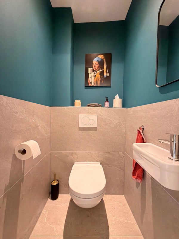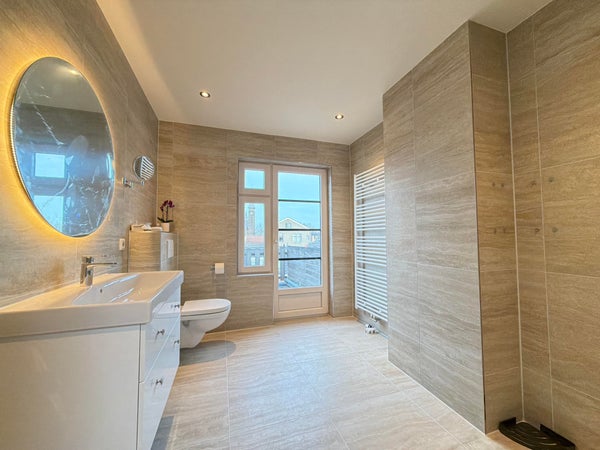 Op de tweede etage bevinden zich twee comfortabele slaapkamers, ideaal voor een stel of een klein gezin. De badkamer is modern uitgevoerd en beschikt over een inloopdouche, derde toilet, wastafel, handdoekenradiator en toegang tot een tweede balkon – een heerlijke plek om even tot rust te komen.