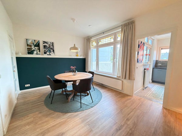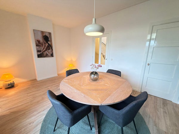 De eerste etage vormt het hart van de woning. Hier bevindt zich de sfeervolle woonkamer met open haard en een prachtig uitzicht over de haven, ideaal voor ontspannen avonden of het ontvangen van gasten. Aangrenzend ligt een aparte eetkamer met toegang tot de moderne keuken. De keuken is volledig gerenoveerd en uitgerust met alle denkbare inbouwapparatuur. Vanuit hier stapt u zo het balkon op, perfect voor een kop koffie. Op deze verdieping is tevens een separaat toilet aanwezig.