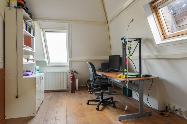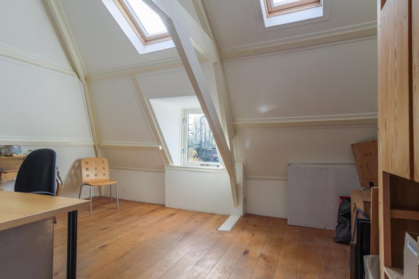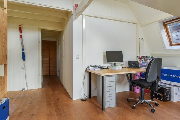 Tweede etage. Hier bevinden zich nog twee kamers die momenteel in gebruik zijn als werkkamers.