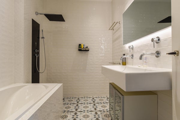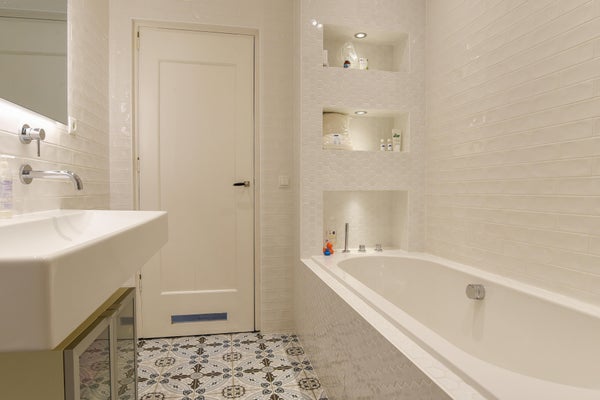 Overloop met toegang tot de ouderslaapkamer aan de voorzijde van het pand en een (kinder)slaapkamer aan de achterzijde. De ruime en luxe badkamer is voorzien van een inloopdouche (douchewand is geplaatst na het maken van de foto’s), ligbad en dubbele wastafel. Op deze etage ligt eveneens een balkon met zicht op de achtertuin.