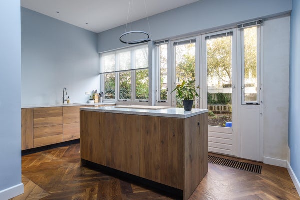 Deze ruime woning van 152m2 heeft vier slaapkamers verdeeld over drie woonlagen en beschikt over een uitgebouwde woonkamer met luxe leefkeuken, een diepe achtertuin met achterom en een garage. De woning is recentelijk gerenoveerd.