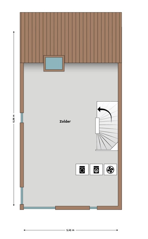 De zolderverdieping is een grote open ruimte met aansluitingen voor een wasmachine, CV-Ketel en mechanische ventilatie. Tevens is er een grote berg zolder beschikaar.