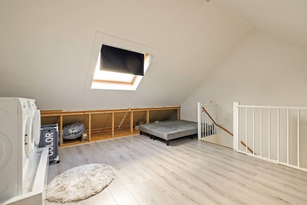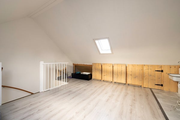 De zolderverdieping is verrassend ruim en dankzij het dakraam heerlijk licht. Deze verdieping leent zich uitstekend als extra slaapkamer, werkruimte of hobbykamer.