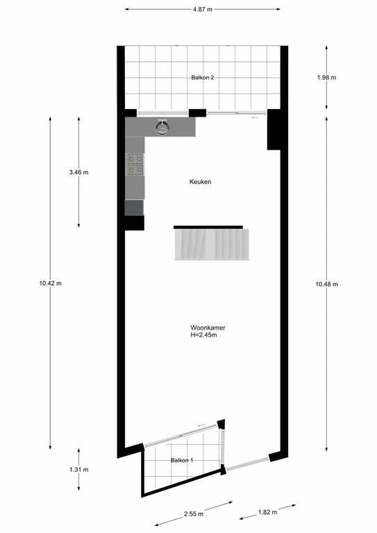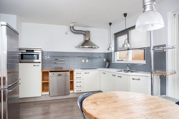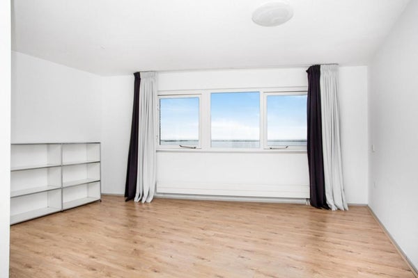 De woonkamer van ca. 30 m² is volledig gericht op het balkon en biedt een adembenemend vrij uitzicht over het Markermeer en de Bataviahaven. Aangrenzend bevindt zich de semi-open woonkeuken (ca. 3,45 x 4,80 meter) in L-opstelling, uitgevoerd in een lichte kleurstelling en voorzien van diverse inbouwapparatuur. Vanuit de keuken heeft u toegang tot het achtergelegen terras van ca. 11 m².