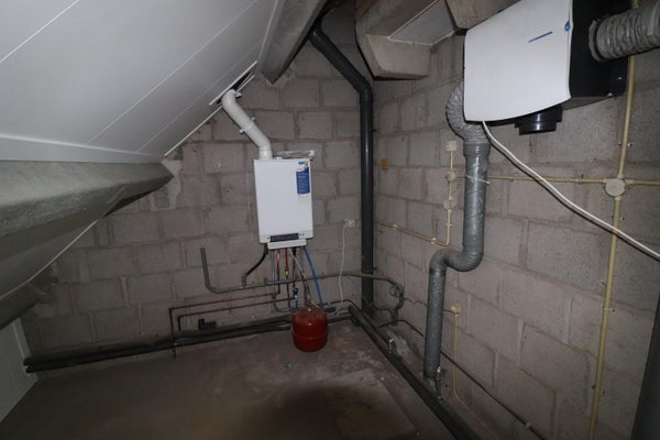 Vaste trap, 3 slaapkamers, volledig betegelde badkamer met douche, wastafel, toilet en wasmachine aansluiting