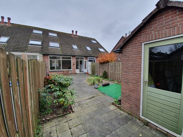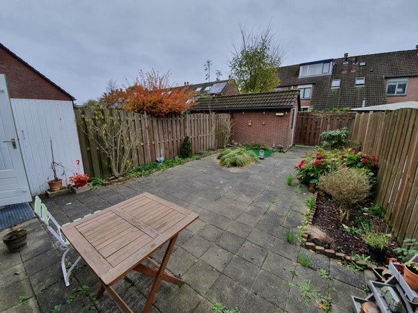 De ruime achtertuin is voorzien van tegels en borders voor beplanting, In de aangebouwde stenen berging is elektra aanwezig en heeft u genoeg plaats voor uw tuingereedschap, fietsen en uw kostbare tuinmeubilair.