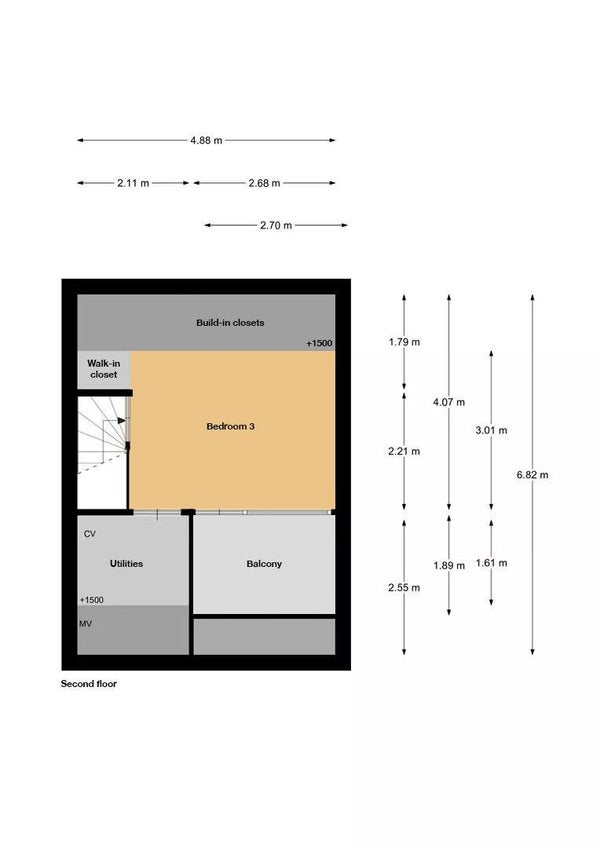 Via de vaste trap bereik je de tweede verdieping met een ruime derde slaapkamer. Vanuit de slaapkamer loop je zo het dakterras op het zuiden op. Hier kun je in alle privacy van de zon genieten. Ook vind je op deze verdieping de CV-ketel, inbouwkledingkasten en plek voor je wasmachine en droger.
