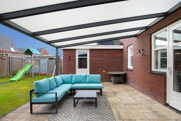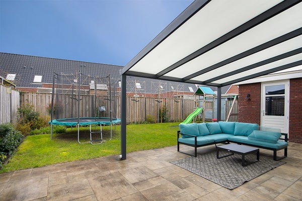 De lichte en royale woonkamer vormt samen met de open keuken een prachtige leefruimte. De keuken is modern, volledig uitgerust en ideaal voor kookliefhebbers. Via de openslaande deuren stap je de ruime achtertuin in, voorzien van een grote overkapping waar je het hele jaar door heerlijk kunt loungen. Vanuit de tuin is tevens de garage/schuur toegankelijk.