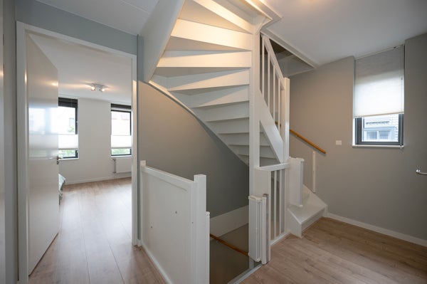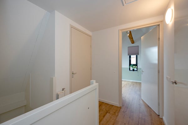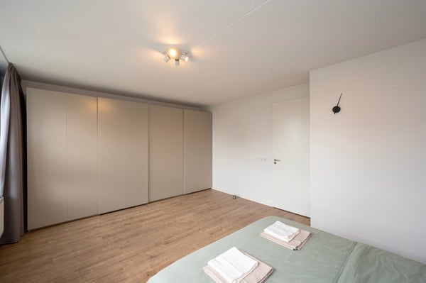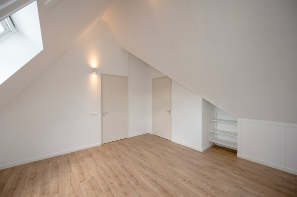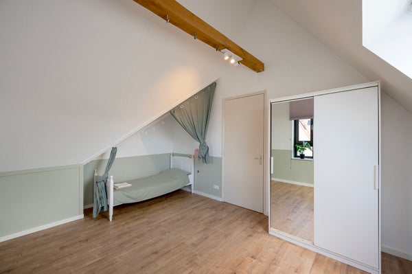 Op de tweede verdieping bevinden zich nog twee grote slaapkamers met hoge plafonds. Eén slaapkamer is ingericht met een eenpersoonsbed en kast, de andere kamer kan naar wens worden ingericht, bijvoorbeeld als werkkamer. Tevens is hier een technische ruimte met wasmachine, ruimte voor een droger, en aan de muur bevestigde droogrekken. Twee ruime inbouwkasten op deze verdieping kunnen samen met de aanwezige zolder worden gebruikt voor extra opslag.