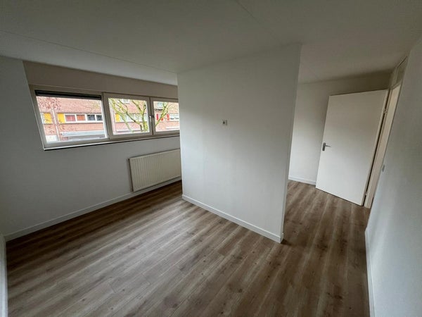 Tussenwoning met woonkamer met half open keuken, toiletruimte, achtertuin, 3 slaapkamers, badkamer, wasruimte, dakterras en privé parkeerplaats.