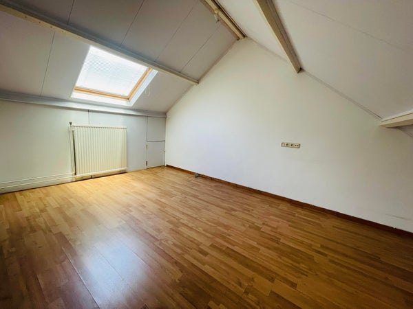 Tweede verdieping: Overloop (4 m²), ruime slaapkamer (17 m²) en aparte berging (7 m²) met aansluitingen voor wasmachine en wasdroger.