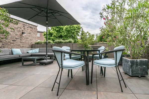 Vanuit de bergruimtes heeft u directe toegang tot het royale, volledig ingerichte dakterras.