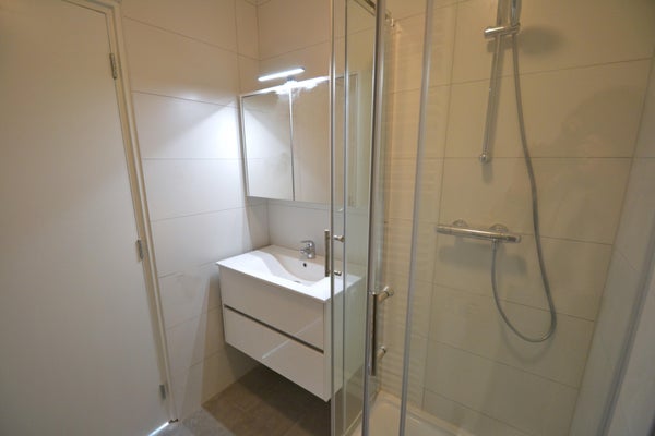 Een verdieping hoger wachten twee ruime slaapkamers (respectievelijk 19m² en 16m²), beide met inbouwkasten. Hier vindt u ook de gloednieuwe badkamer (4m²) met een elegante wastafel met meubel, een douchecabine en een tweede toilet. Naast de badkamer bevindt zich een royale wasruimte (9m²) met verhoogde aansluitingen voor uw wasmachine en droger.