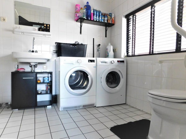 Een ruime kamer met aansluiting voor een wasmachine en droger. In deze kamer bevindt zich tevens een toilet en douche. Vanuit de wasruimte bevindt zich een opening richting de werkkamer of eventueel vierde slaapkamer.