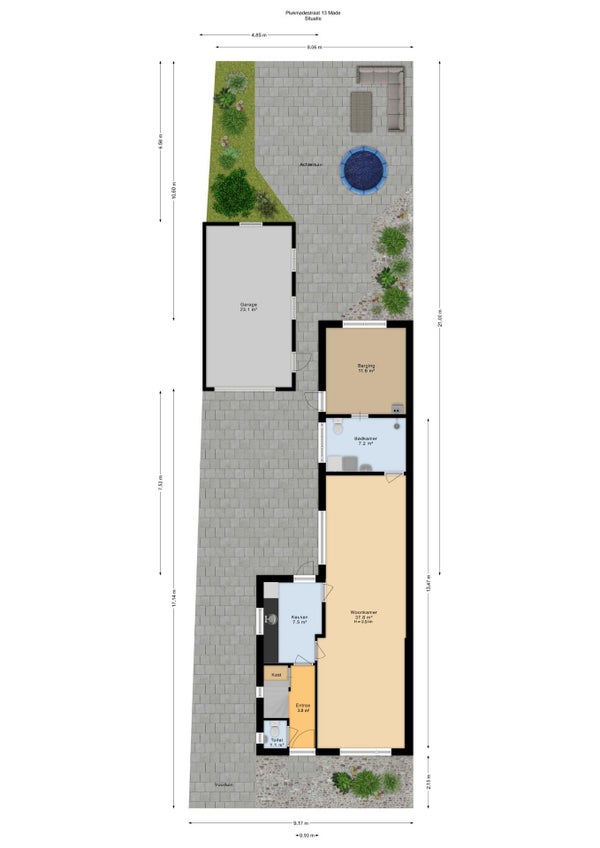 De woning heeft een ruime tuin met terras en groenvoorzieningen.