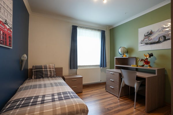 Met maar liefst vijf slaapkamers en twee badkamers biedt de eerste verdieping volop ruimte voor een gezin. Er zijn drie slaapkamers aan de voorzijde en twee slaapkamers aan de achterzijde, waarvan een de master bedroom is. In deze kamer ligt een houten vloer, net als op de overloop.
