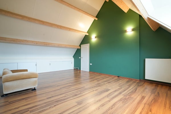 Er is een vaste trap naar de tweede verdieping, waar nog twee (slaap)kamers zijn. Beide slaapkamers hebben een royale maatvoering, bergruimte en een goede afwerking. De grootste kamer, met dakraam, biedt zicht tot in de nok. Boven het andere deel van deze etage is een bergzolder.