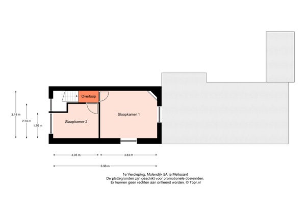 Op de eerste verdieping vindt u een kleine slaapkamer. Daarnaast is er nog een ruimere kamer aanwezig met toegang tot het dak.