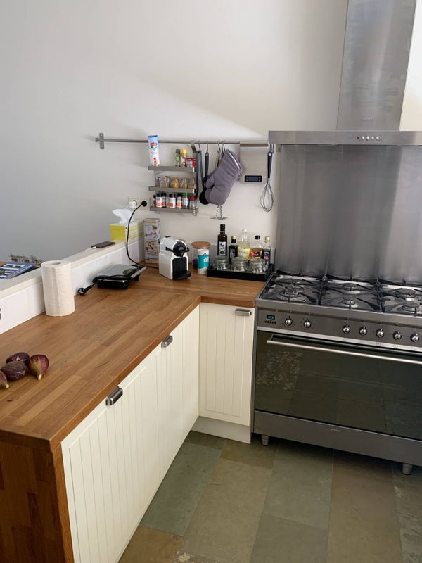 Bij binnenkomst tref je een hal met toilet. De ruime, open keuken is van alle gemakken voorzien, waaronder een koelkast, zes-pits fornuis, oven, vaatwasser, magnetron en dubbele spoelbak. De gezellige woonkamer biedt directe toegang tot de zonnige tuin – perfect om te ontspannen of gezellig buiten te eten.