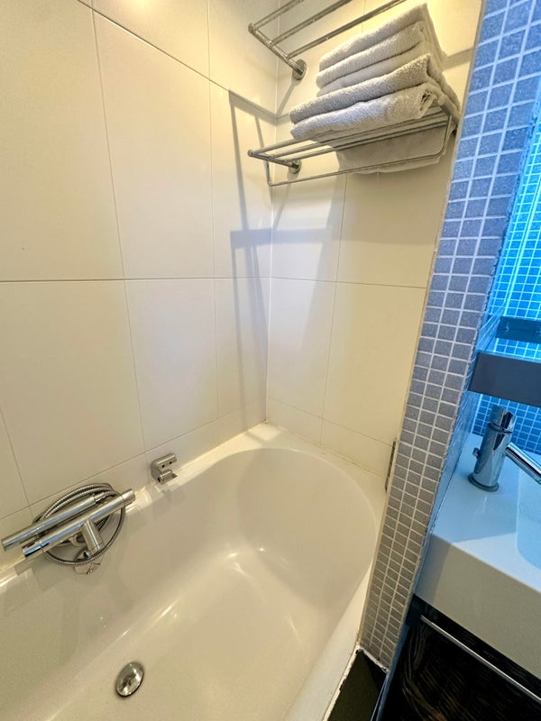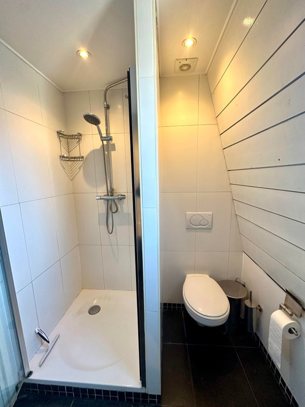 - Badkamer met ligbad, aparte douche, toilet en dubbele wastafel