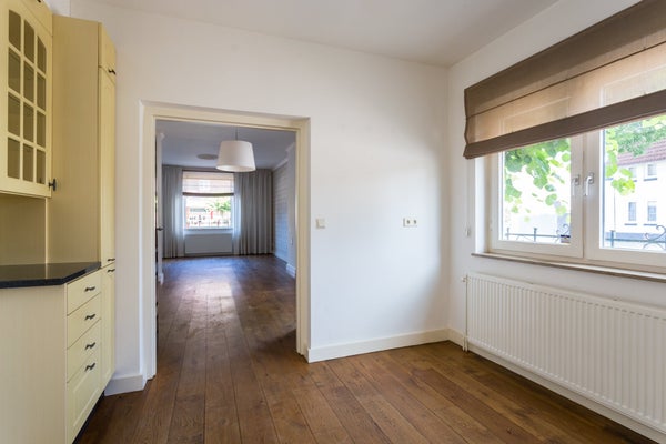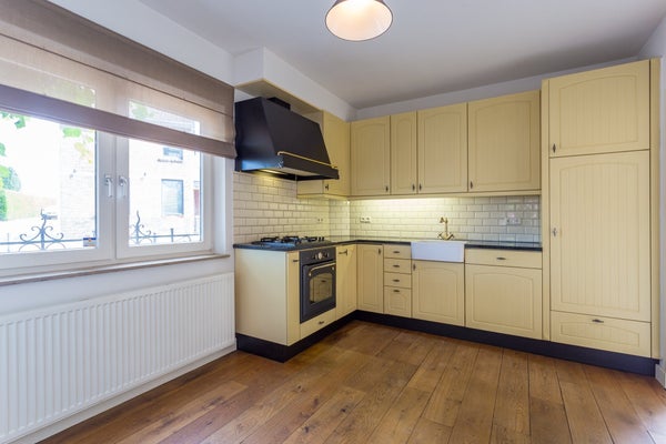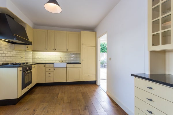 Vanuit de keuken heeft u toegang tot de ruime tuin en een aparte bergruimte.