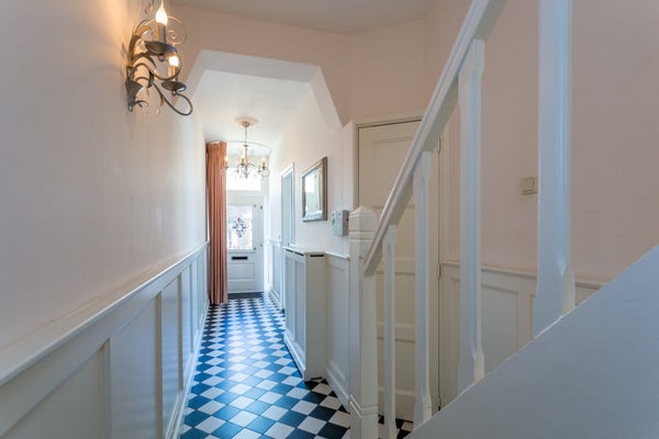 Entree met een mooie authentieke tegelvloer, welke toegang biedt tot de woonkamer, de trap naar de eerste etage en het separate toilet.