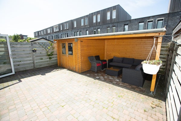 De begane grond verwelkomt je met een lichte woonkamer die naadloos overgaat in een nette keuken met diverse inbouwapparatuur, waaronder een gaskookplaat, afzuigkap, oven en koelkast. Vanuit de woonkamer biedt een deur toegang tot de betegelde achtertuin, compleet met berging, achterom, comfortabele overkapping en tuinset.