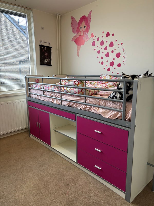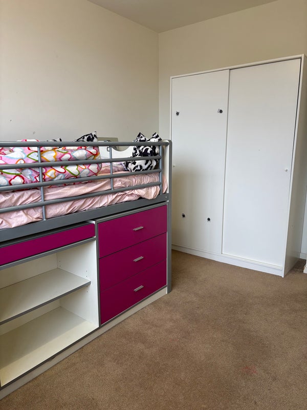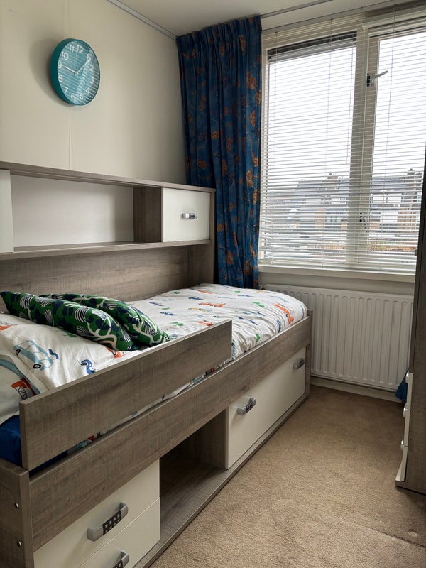 De woning omvat vier comfortabele slaapkamers, wat flexibiliteit biedt voor gezinnen, gasten of thuiswerken. De badkamer is functioneel en goed onderhouden, met alle noodzakelijke voorzieningen voor dagelijks gebruik.