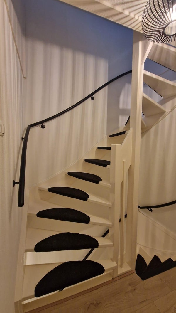 De overloop biedt toegang tot drie slaapkamers en een doucheruimte met een toilet op de eerste verdieping. De tweede verdieping is via een vaste trap te bereiken. Op deze verdieping is de vierde slaapkamer, voldoende bergruimte en open technische ruimte om wasmachine en droger aan te sluiten.