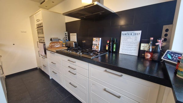 Via de entree toegang tot de hal en de deur met toegang naar de smaakvol ingerichte woonkamer voorzien van een parketvloer. De open keuken is uitgerust met een kookeiland en diverse inbouw apparatuur waaronder een vaatwasser, combi magnetron, oven en een 5 pits gaskookplaat. De mogelijkheid bestaat om in de toekomst elektrisch te koken. Door de acht nieuwe zonnepanelen (2023 geïnstalleerd) en mogelijkheid inductieplaat te installeren, kunnen de vaste lasten drastisch naar beneden.