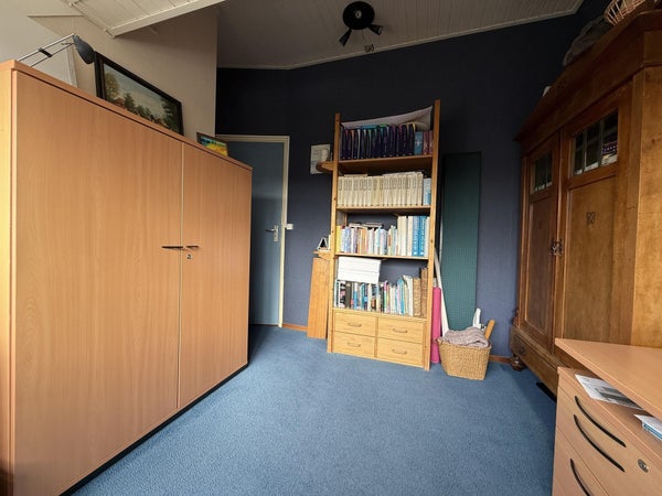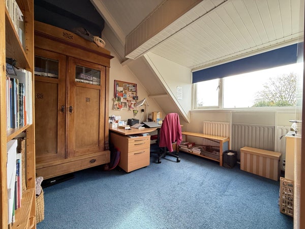 Tweede verdieping: Voorzolder waar nu een werkplek is gemaakt, separate ruimte met de aansluiting voor de wasmachine en droger. Vierde slaapkamer welke nu als kantoorruimte is ingericht. Vijfde slaapkamer welke nu als hobbykamer/logeerkamer is ingericht.