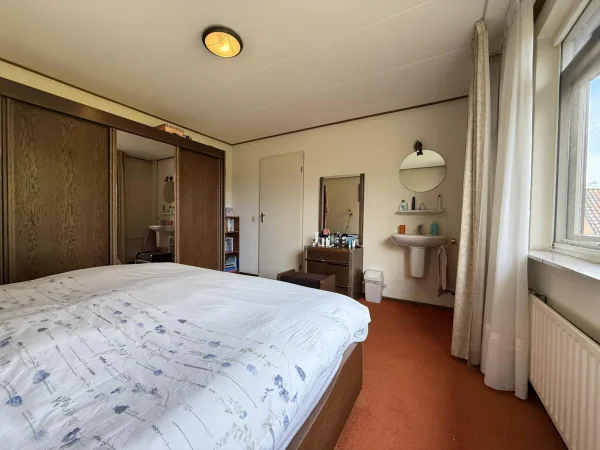 In een rustige, kindvriendelijke wijk in Nijkerk staat deze goed ingedeelde tussenwoning te huur voor ongeveer twee jaar. De woning heeft vijf slaapkamers en een zonnige achtertuin met schuur, gelegen aan een straat waarvan je alleen te voet toegang hebt. Winkels en het treinstation zijn op loop- en fietsafstand. De begane grond heeft een entree, hal met toilet, een ruime woonkamer en een open keuken met apparatuur. De eerste verdieping biedt drie slaapkamers, een nette badkamer en een tweede toilet. De zolder is ingericht met een werkplek en bevat twee slaapkamers. De achtertuin is bereikbaar via een achterom en er is een stenen schuur voor fietsen. Vrij parkeren in de wijk. Huisdieren en rookverbod zijn in overleg.