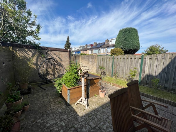 De tuin is voorzien van een achteringang en een schuur van circa 8m2.