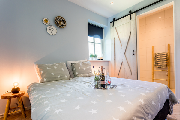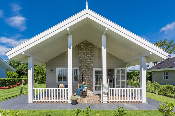Een sfeervolle, royale bungalow van 70 m2 met een ruime woonkamer met haard en