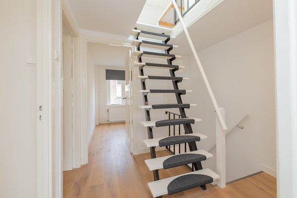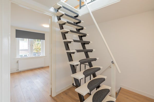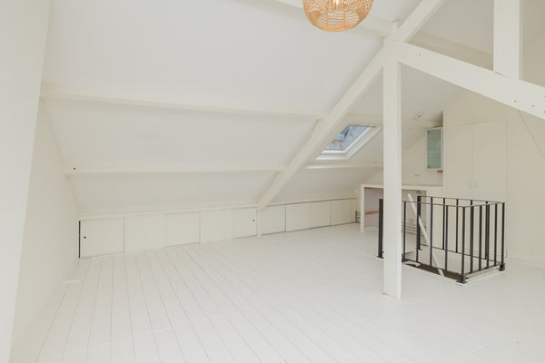 Tweede verdieping: Via een vaste trap bereik je een royale zolderkamer met volop bergruimte, wasmachineaansluiting en cv-opstelling (Intergas HRE combiketel, huur, 2019). Hier is eenvoudig een extra kamer te realiseren.