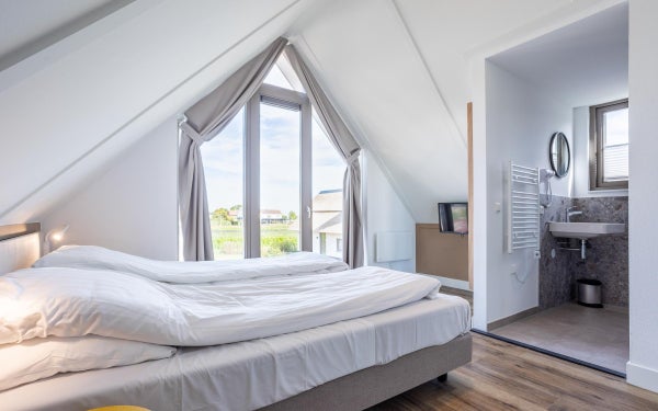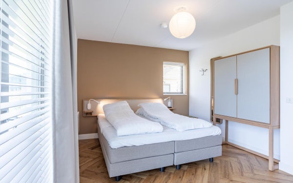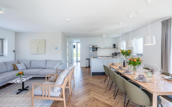 Meer wensen zijn niet mogelijk. Topklasse woning met 4 "hotelkamers" in een 8 Persoonswoning. De rietgedekte woning is een plaatje met een ruime veranda. De hal geeft toegang tot de berging, toilet, trap en royale lichte woonkamer met ruime zithoek uitkijkend op het terras. De houtkachel maakt extra sfeer alsook de buitenhaard. De openslaande tuindeuren vormen een mooie overgang van binnen naar buiten. Een achtpersoons eethoek en open keuken met kookeiland maakt de living compleet. Aansluitend aan de woonkamer ligt een slaapkamer met badkamer en-suite met in de douche een sunshower. Op de verdieping met twee grote dakkappelen zijn drie slaapkamers met elk hun eigen privé badkamer met douche/sunshower en toilet. Iedere slaapkamer is voorzien van een TV.