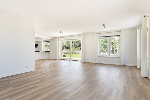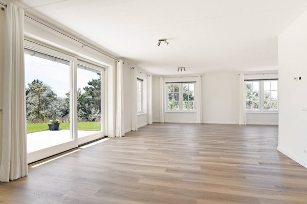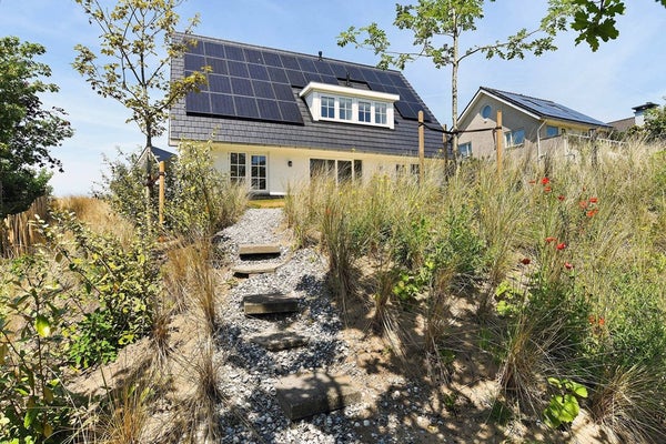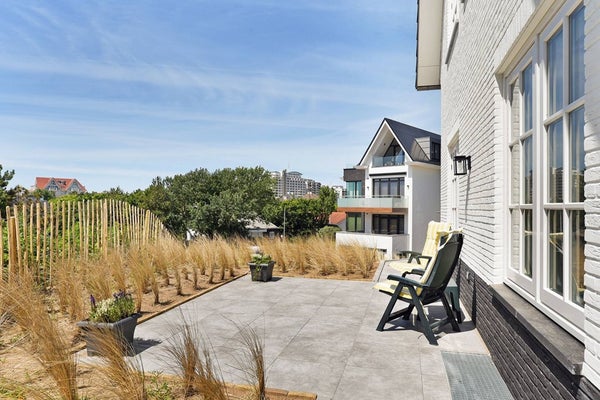 Schuifdeuren van de woon- en eetruimte geven toegang tot de zonnige, op het zuiden gerichte tuin die rondom het huis loopt en beschikt over twee ruime terrassen. De tuin is weelderig met groen en biedt een prachtig uitzicht op de duinen en het iconische Grand Hotel Huis ter Duin. De perfecte setting voor uw ochtendkoffie of zomer diners.