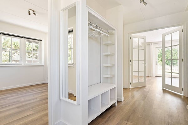 Bij binnenkomst van de woning wordt u verwelkomd door een ruime en lichte hal, met veel ruimte en een mooie garderobe. Terwijl u door de hal naar de woonkamer loopt, komt u langs een apart toilet en de ingang naar een extra studeerkamer/ruimte, perfect voor gasten.