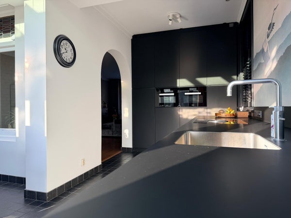 De woonkamer is prachtig ruim en sfeervol. De open keuken is volledig uitgerust en beschikt over diverse Miele inbouwapparatuur, te weten: koel/vrieskast, oven, inductiekookplaat, afzuigkap, Quooker en vaatwasser. Ook is er voldoende opbergruimte! Via de keuken is zowel de achtertuin als de garage te bereiken. In de garage bevindt zich de aansluiting voor de wasmachine en droger. Tevens heeft de garage een bovenverdieping welke perfect kan dienen als werkruimte.