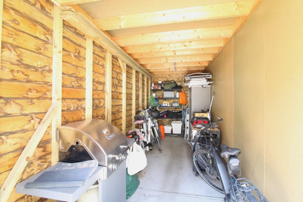 De tuin aan de achterzijde is v.v. een ruime berging voor fietsen of tuinbenodigdheden, en beschikt daarnaast over een flink terras.