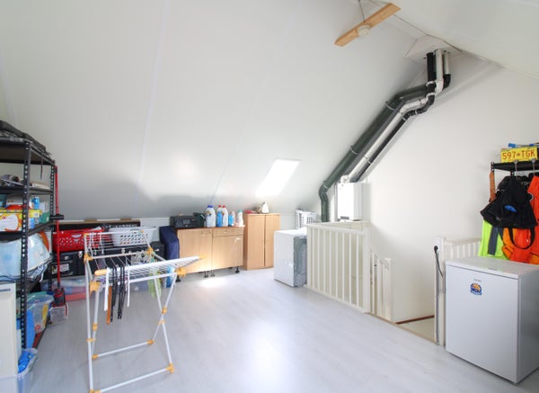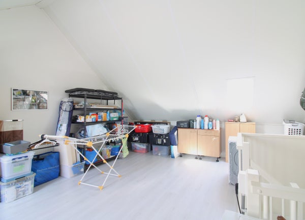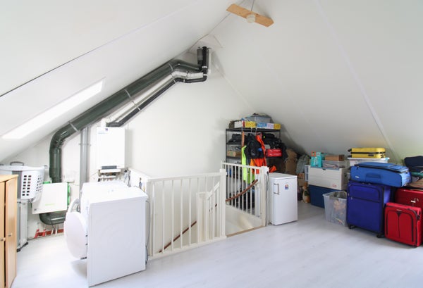 Ruimte zolder voorzien van een laminaatvloer. Tevens is hier de centrale verwarming te vinden. De zolderkamer is uitstekend te gebruiken als extra slaapkamer.