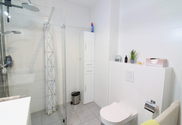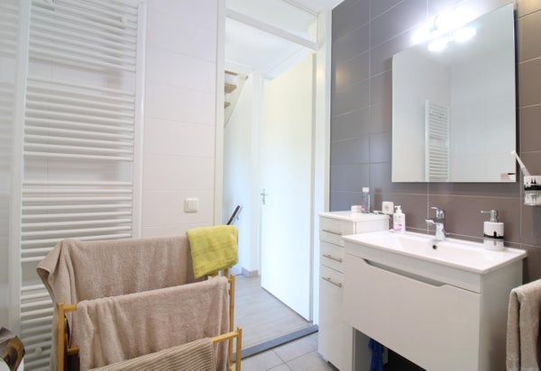 Voorzien van drie slaapkamers, en tevens een net afgewerkte badkamer die beschikt over een inloopdouche, toilet en wastafel. 1e etage is volledig voorzien van een laminaat vloer.