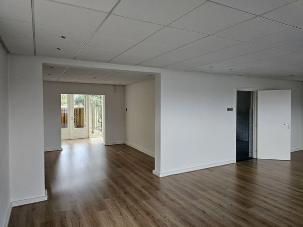 Vanuit de woonkamer heeft u via openslaande deuren toegang naar de tuin. Heerlijk voor in de zomerdagen!