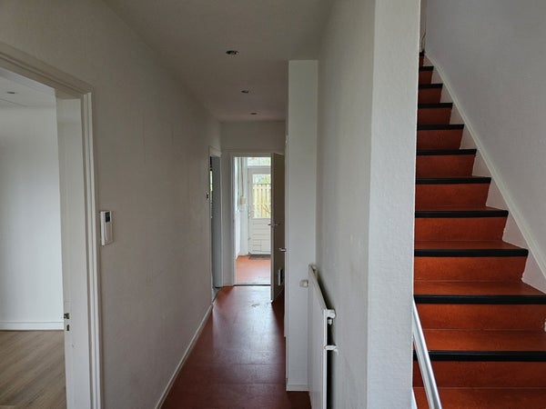 Als u de centrale gang binnen loopt komt u linksom direct terecht in de woonkamer die over grote raampartijen beschikt met veel lichtinval. Loopt u iets verder door in de gang dan treft u daar aan de rechterzijde de toiletruimte en achter aan de gang een aparte was- en installatieruimte.
