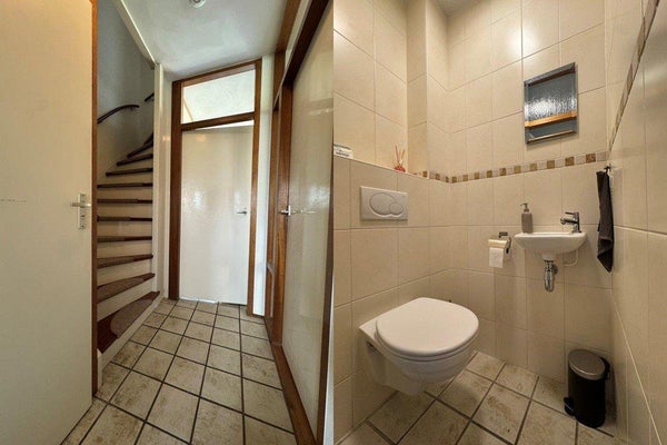 Via een vaste trap bereik je de ruime zolderverdieping. Deze etage biedt volop mogelijkheden als extra slaapkamer, werkruimte of hobbykamer. Hier bevinden zich tevens de aansluitingen voor de wasapparatuur en de opstelling van de technische installaties (warmtepomp en cv-ketel).