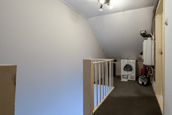 Via een vaste trap bereik je 2e verdieping, deze kan fungeren als opslagplaats en is ideaal om de was te drogen.